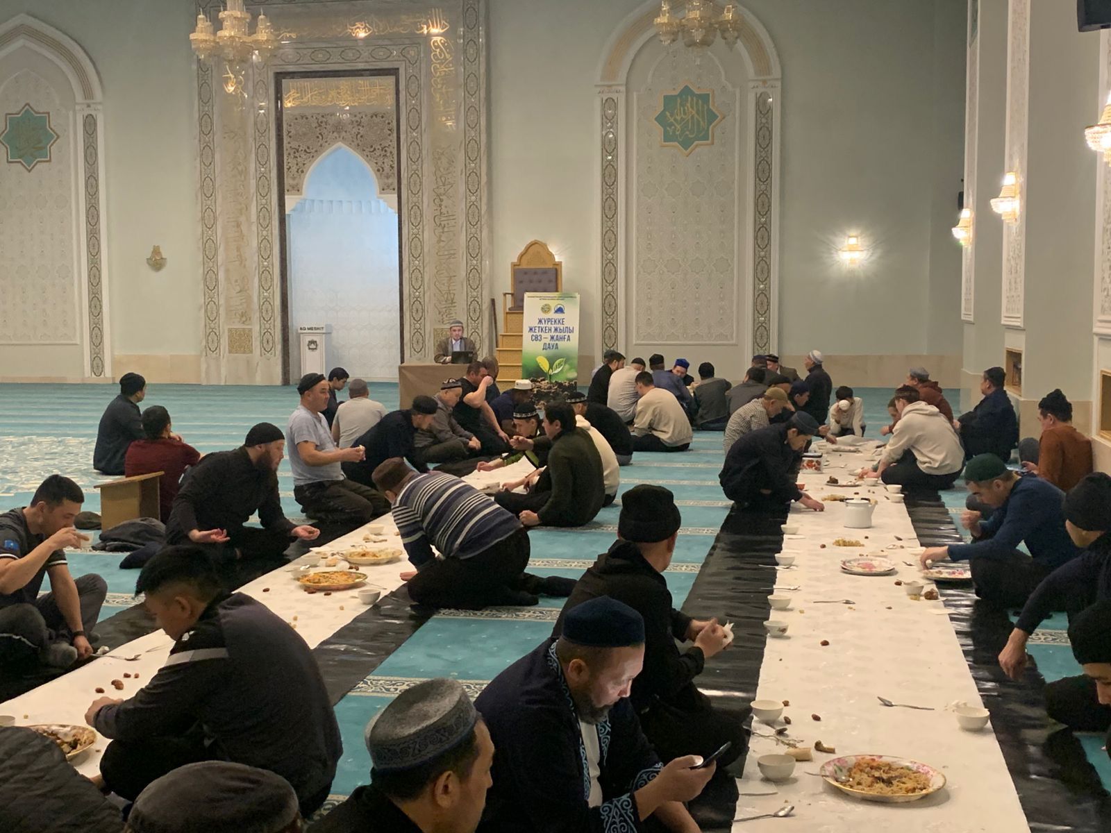 Sondaı-aq qasıetti Ramazan aıyna daıyndyq máselesi qozǵalyp, qulshylyq-ǵıbadatty arttyrý, Quran oqýǵa kóńil bólý jáne ıgi amaldardy kóbeıtý qajettigi aıtyldy. Rýhanı basqosýda jamaǵat erkin pikir almasyp, kókeıdegi suraqtaryna jaýap aldy.