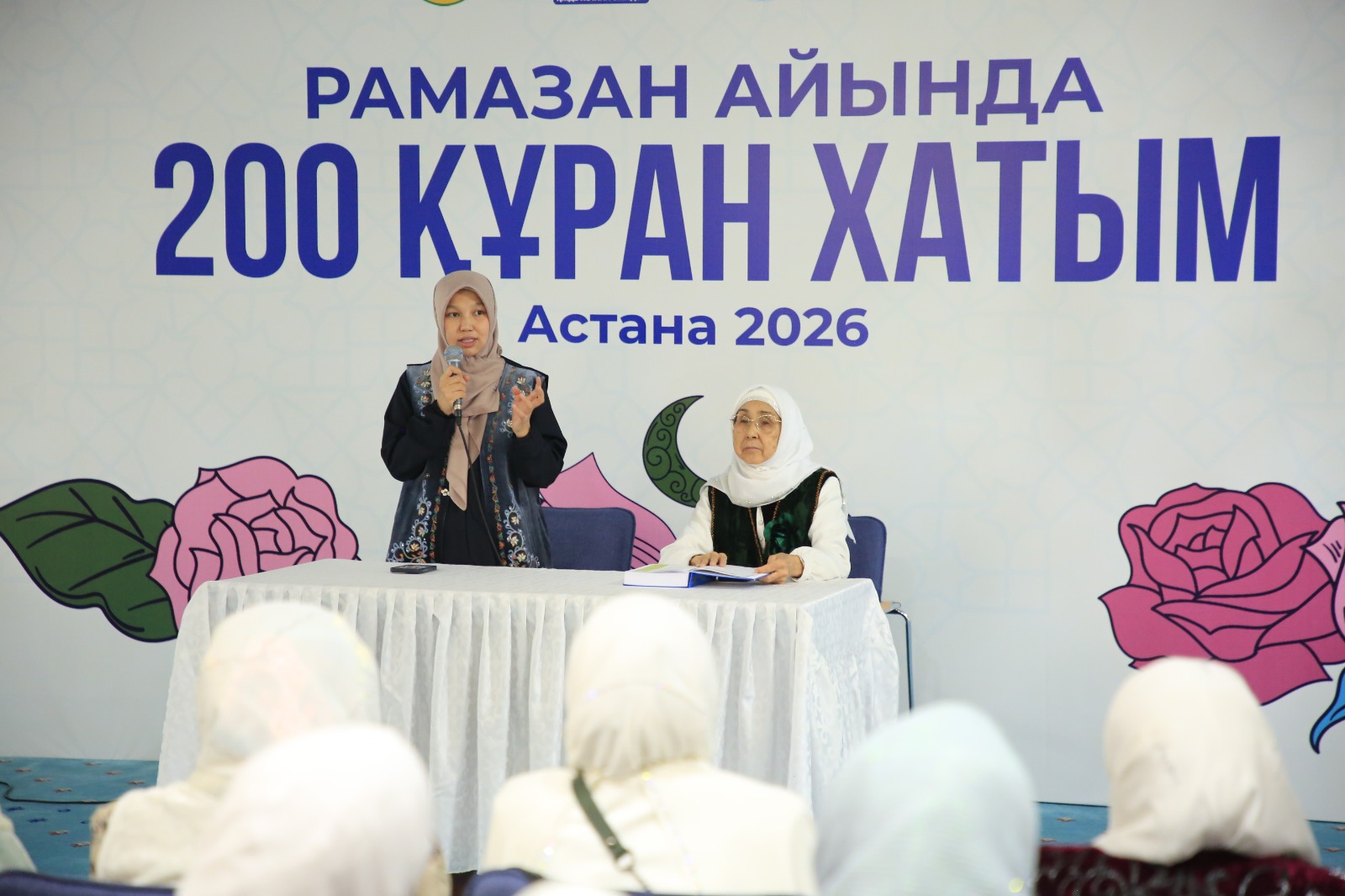Astana qalasy ókildigi Dástúr jáne otbasy baǵyty aıasynda Áıel-qyzdar sektorynyń uıymdastyrýymen «Áziret Sultan» meshitinde Ramazan aıynda bir ǵana áıel ustazdardyń atsalysýymen 200 ret Quran hatym etilip, duǵasy baǵyshtaldy.