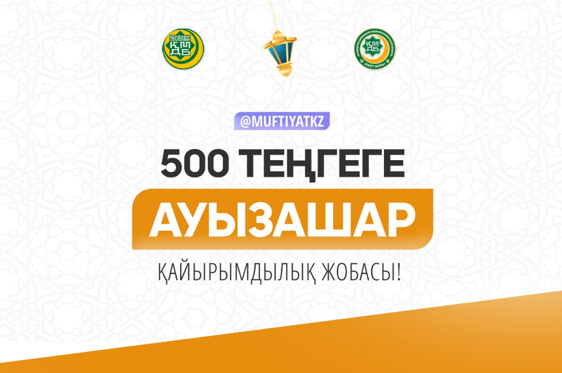 Айта кетейік, "Зекет" қоры және "Мүфтият жастары" ұйытқы болған "500 теңгеге ауызашар" атты қайырымдылық акциясына жомарт жандар небары 6 күнде 2 млн. 500 мың теңге аударды.