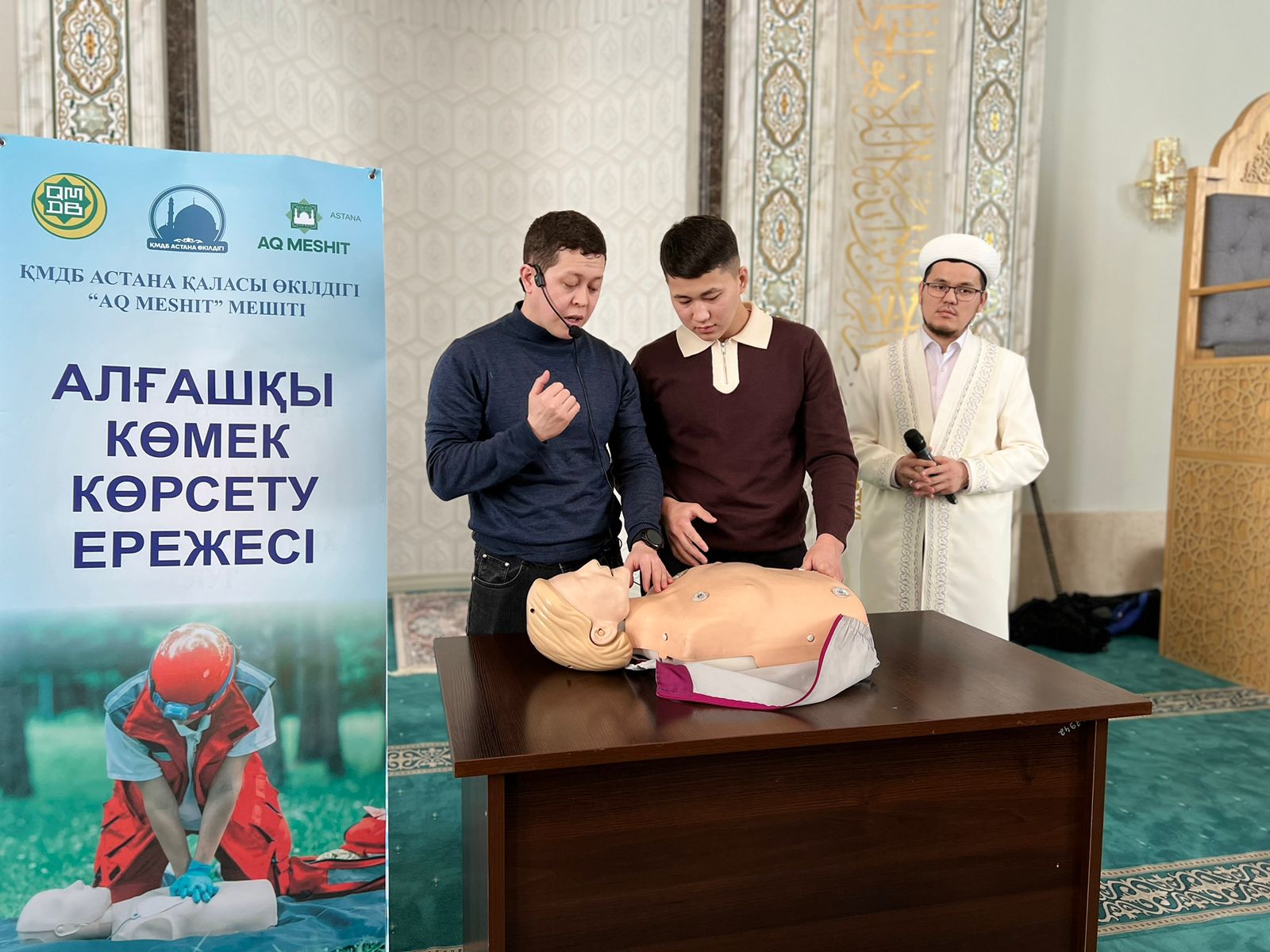Бас имам Дәурен Мүслимовтың ұйымдастыруымен өткен семинарда Америкалық кардиологтар ассоциациясының алғашқы көмек көрсету инструкторы Азамат Мақсұтұлы дәріс оқыды.