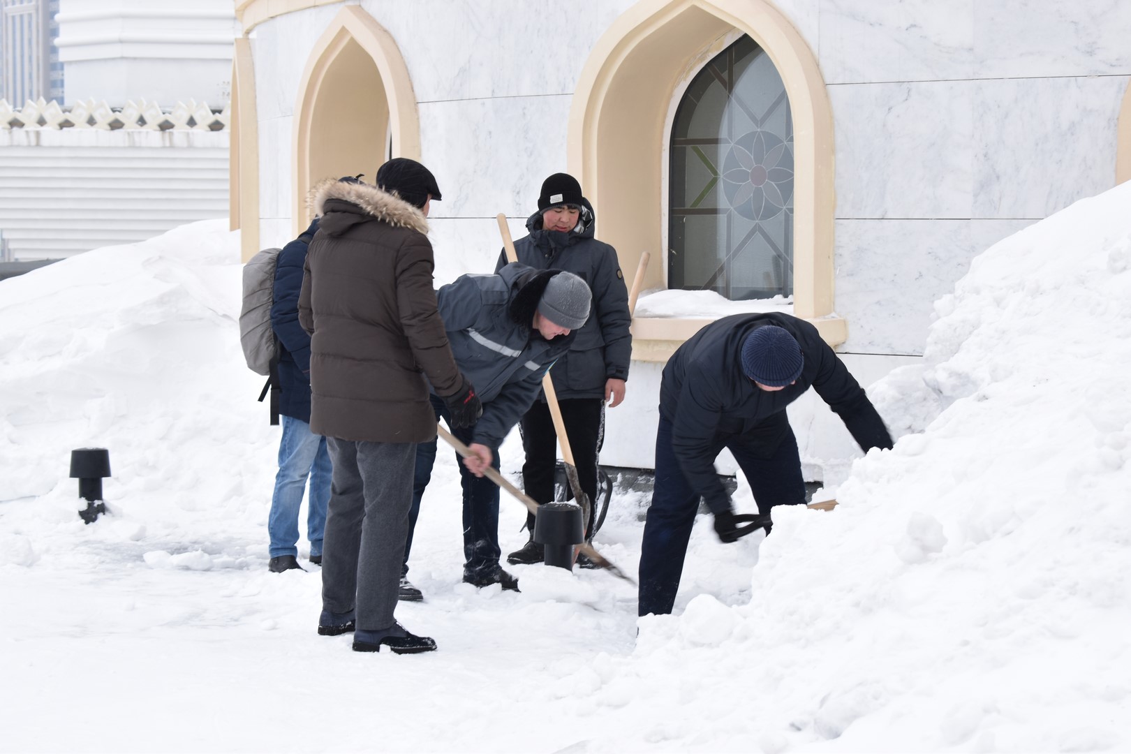Биылғы жылы ақтүтек бораны басылмай, қары қалың түскен Нұр-Сұлтан қаласындағы мешіттердің төбесін тазалау жұмыстарын екі есеге арта түскендей. Осыған орайда еліміздің Бас мешіті – «Әзірет Сұлтан» ордасында әр апта сайын тұрақты түрде сенбілік жұмыстары ұйымдастырылу үстінде.