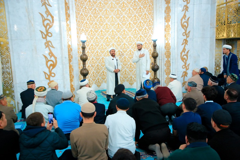 Мешіттің наиб имамы Жұманазар Садырханов жамағатқа ҚМДБ Төрағасы, Бас мүфти Наурызбай қажы Тағанұлының арнайы бұйрығын оқып таныстырды. Ақсақалдар батасын беріп, азаншы қызметіне кіріскен Қуаныш Бәкенұлына сәттілік тіледі.