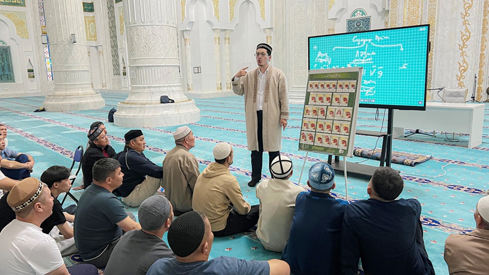 «Әзірет Сұлтан» мешітінде өтіп жатқан «Он күнде Құран оқып үйрен» семинарының қатысушыларына Құран әріптерінің шығу махражы түсіндірілді. Мешіт азаншысы Мұсабек Еркінбек әріптерді оқып үйренуде есте сақтау қажет болған негізі ережелермен таныстырып, әр дыбыстың шығу орны мен айтылу әдісін түсіндірді.