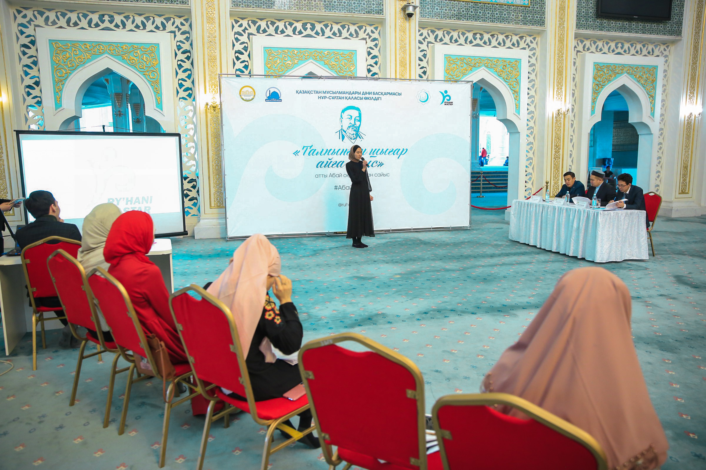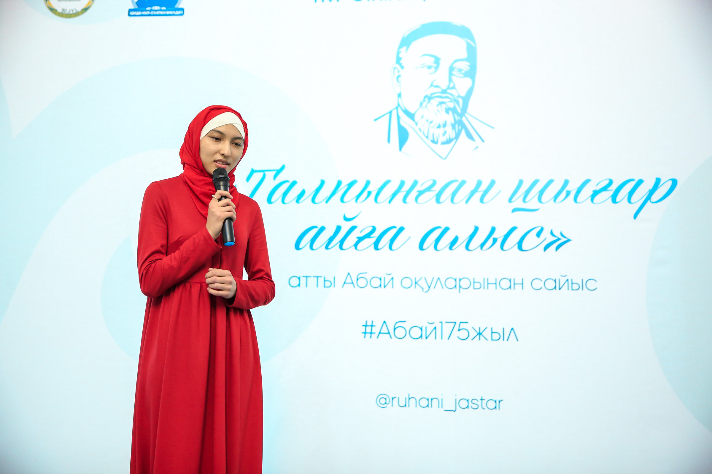 Бүгін Нұр-Сұлтан қаласындағы республикалық «Әзірет Сұлтан» мешітінде хакім Абайдың 175 жылдығына орай Нұр-Сұлтан өкілдігі «Рухани жастар» қанатының ұйымдастыруымен ұлт ұстазының мұрасын ұлықтаған айтулы байқау болып өтті. «Талпынған шығар айға алыс» атты тақырып аясында өткен байқауға Бас мешіт шәкірттері арасынан іріктеліп шыққан алты үміткер қатысып, жамағат алдында өз өнерлерін көрсетті.
