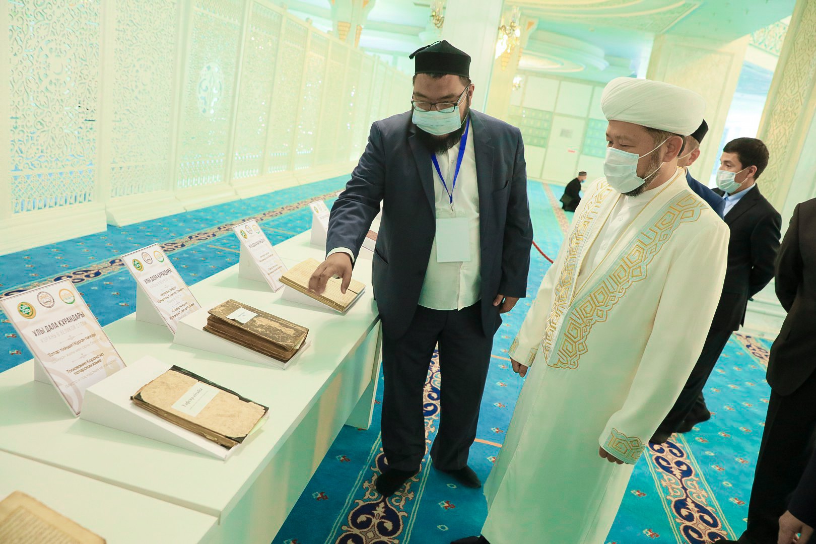 Көрмені алғашқы болып ҚМДБ төрағасы, Бас мүфти Наурызбай қажы Тағанұлы тамашалады. «Әзірет Сұлтан» мешітінің ұстазы Мақсатбек Қайырғалиев Бас мүфтиге қариларға арналған көрмеге қойылған Құран кітаптарымен таныстырып өтті.