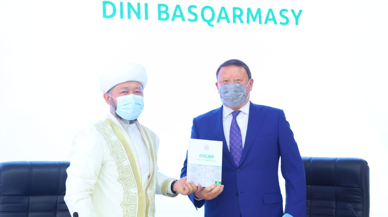 Кездесу соңында Бас мүфтм облыс әкіміне «Ихсан – рухани тәрбие негізі» кітабын сыйға тартты.