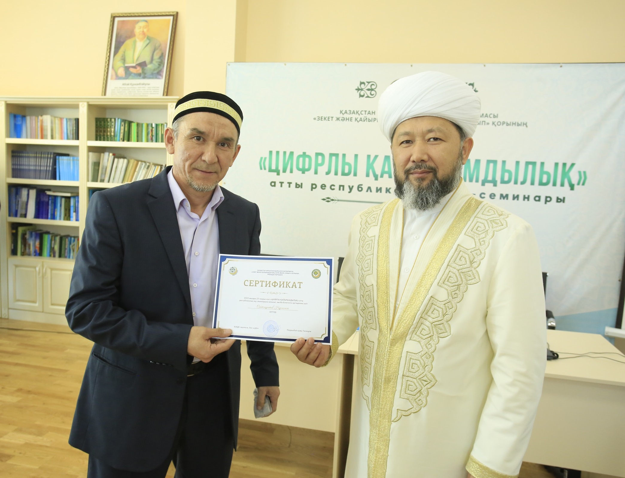 Бас мүфти «Цифрлы қайырымдылық» семинарының қатысушыларына сертификат табыстады (ФОТО)