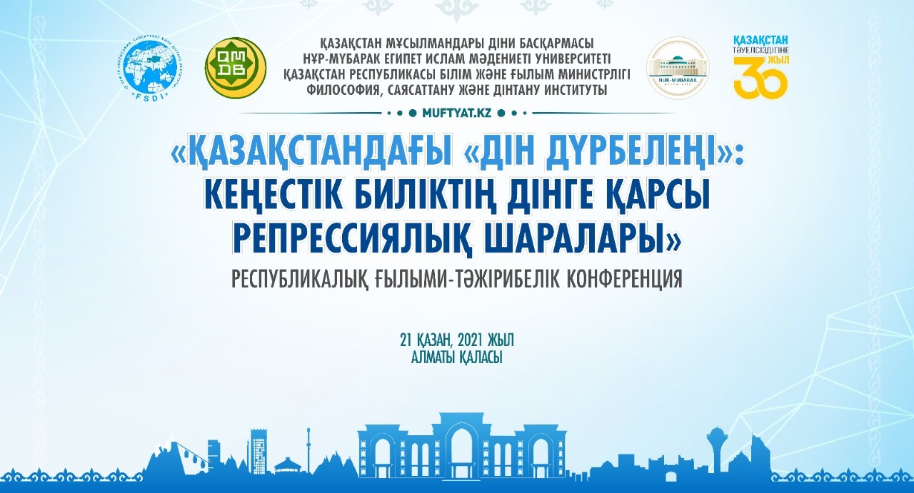21 қазан күні Қазақстан мұсылмандары діни басқармасы және Философия, саясаттану және дінтану институтының ұйымдастыруымен Алматы қаласындағы Нұр-Мүбарак университетінің ғимаратында «ҚАЗАҚСТАНДАҒЫ «ДІН ДҮРБЕЛЕҢІ»: КЕҢЕСТІК БИЛІКТІҢ ДІНГЕ ҚАРСЫ РЕПРЕССИЯЛЫҚ ШАРАЛАРЫ» республикалық ғылыми-тәжірибелік конференциясы өтеді.