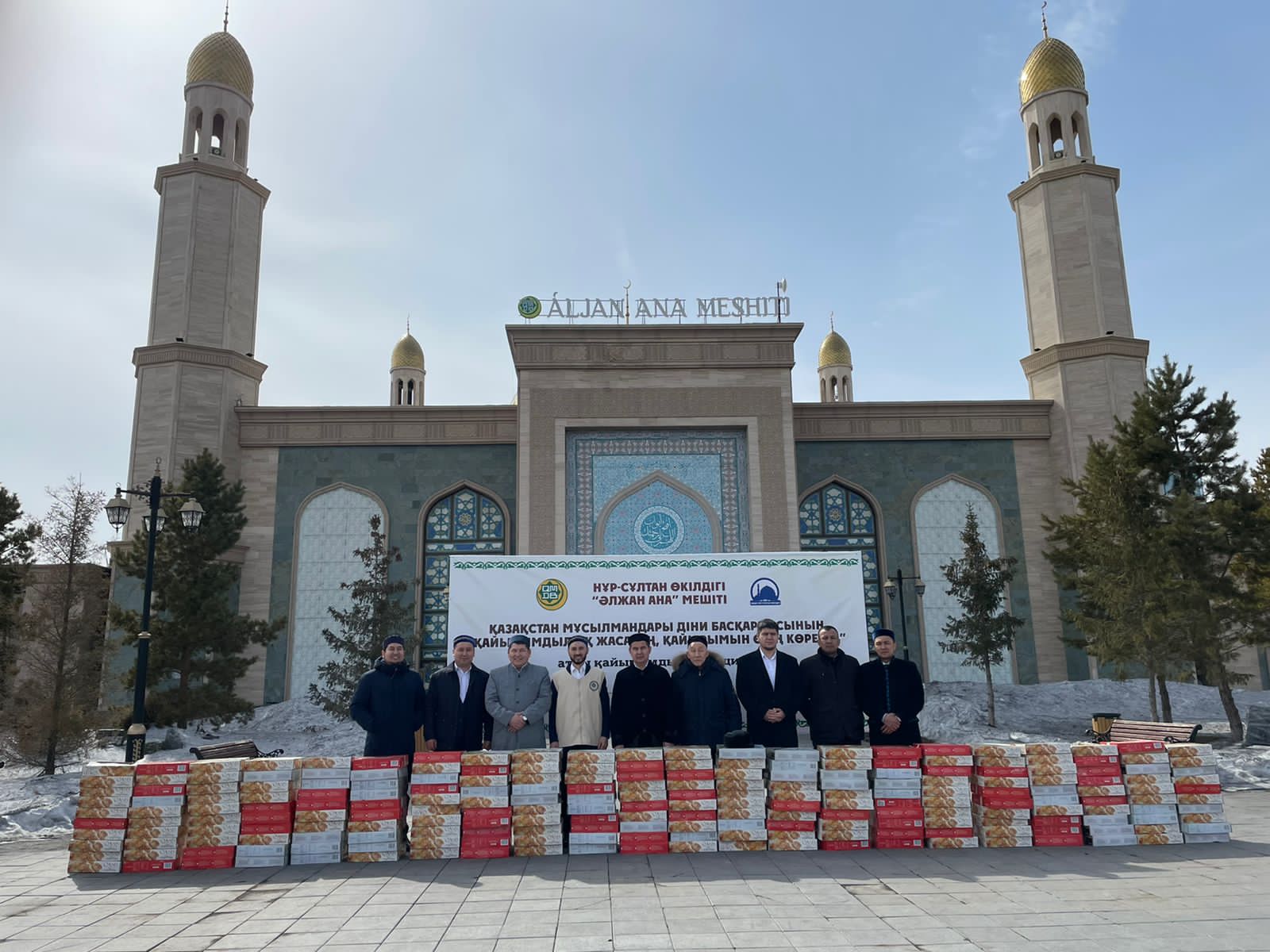 Қасиетті Рамазан айына орай Нұр-Сұлтан қаласындағы «Әлжан ана» мешіті мен ҚМДБ «Зекет және қайырымдылық» қорының Елорда филиалының ұйытқы болуымен қаладағы құлшылық ордаларына 250 қорап құрма таратылды.