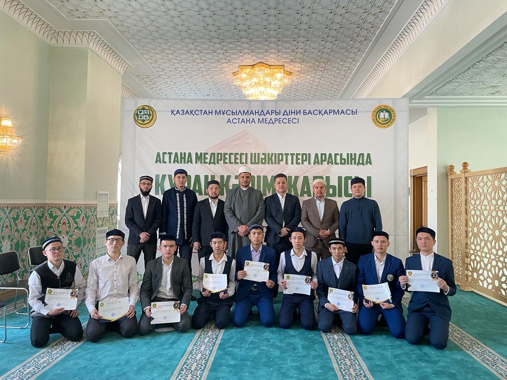 ҚМДБ Астана өкілдігі мен «Астана» медресе-колледжі бірлесе отырып медресе студенттері арасында Құран жарысын өткізді. Аталған жарысты Қазақстан мұсылмандары діни басқармасының Астана қаласы бойынша өкілі, республикалық «Әзірет Сұлтан» мешітінің Бас имамы Ерболат Нұрылдаұлы ізгі тілегін арнап ашып берді.