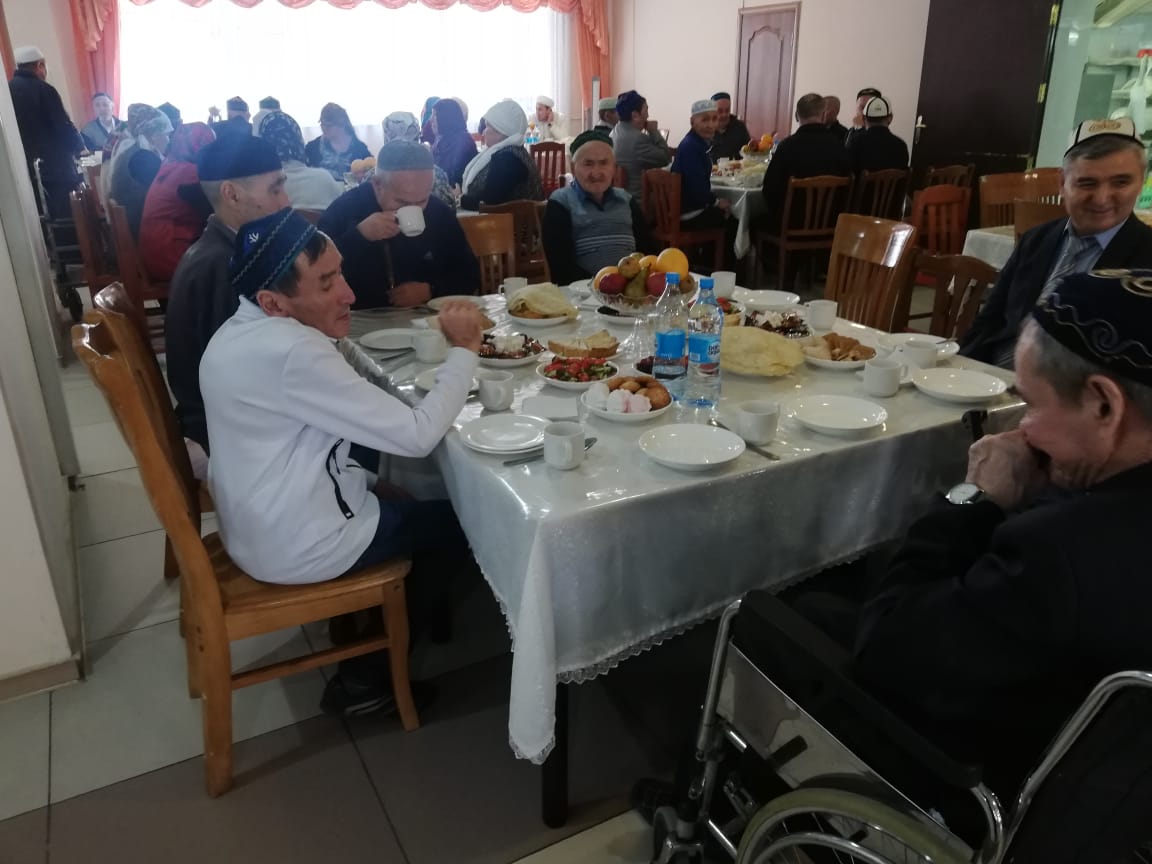 Қасиетті Құран аяттарымен басталған шара барысында «Раиса ана» мешітінің наиб имамы Хамит Әліпбекұлы қариялар қауымына уағыз айтып, насихат жүргізді. Қарттар үйіндегі тағдырдың талқысына түскен ата-әжелерге мейірімділік танытып, қамқорлық көрсетті. Мешіті ұжымы «Раиса Ана қыз-келіншектер мектебімен» бірігіп, арнайы дастархан жайды. Сонымен қатар, дәстүрлі әндер шырқалып, қарттардың жүзіне қуаныш ұялатты. Шара соңында қарттарымыз шексіз алғыстарын жаудырып, жастарға ұзақ ғұмыр тіледі.