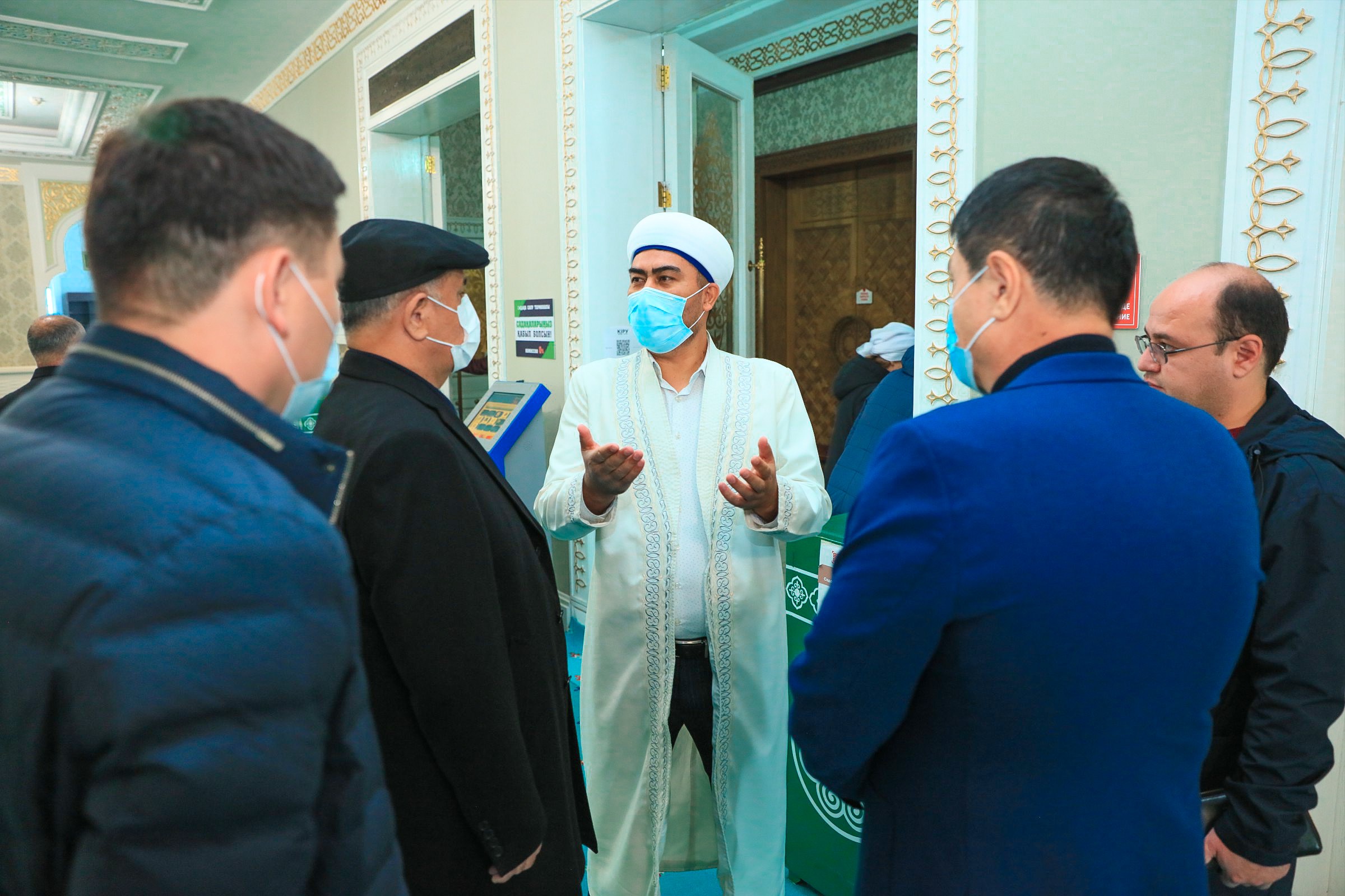 Құрметті қонақтарды «Әзірет Сұлтан» мешітінің наиб имамы Бақытжан Өткелбаев қарсы алып, құлшылық ордасының қазіргі уақыттағы жағдайымен таныстырды. Сондай-ақ, елдегі пандемиялық жағдайға байланысты мешіттегі қауіпсіздік және сақтық-тазалық шаралары, діни сауат курстарының онлайн жүргізілуі секілді тың жобалар жайлы айтып өтті. Өзбекстан прокуроры қазақ мешіттеріндегі онлайн садақа беру жүйесіне ерекше қызығушылық танытып, таңданысын білдірді.