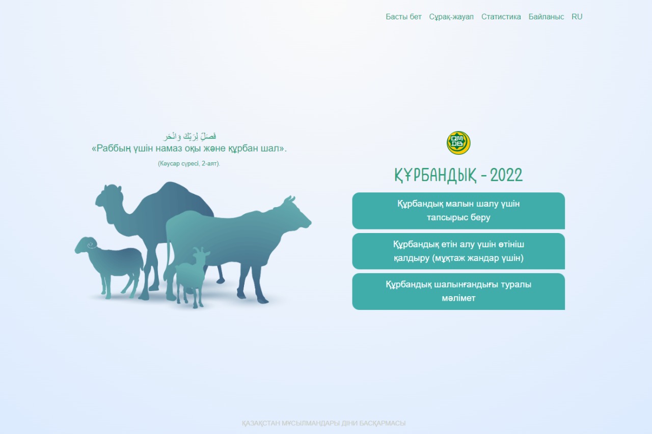 ҚМДБ Төрағасы Наурызбай қажы Тағанұлы бұқаралық ақпарат құралдары өкілдеріне берген сұхбатында құрбан шалу рәсімін қашықтан өткізуге арналған qurban2022.kz сайты іске қосылғанын хабарлады.