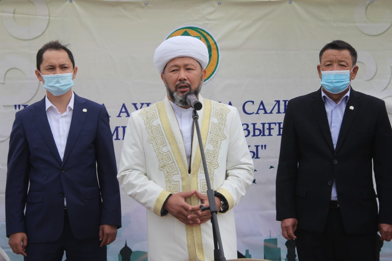 Игі басқосуда Бас мүфти Алла үйін тұрғызуға бастамашыл болған белгілі ақын Бауыржан Халиоллаға ізгі ниетін білдірді. Салтанатты іс-шарада ақын Мұхамеджан Тазабеков те құттықтау сөзін жеткізді. Мешіт қазығын қағу алдында құрбан шалынып, дұға жасалды.