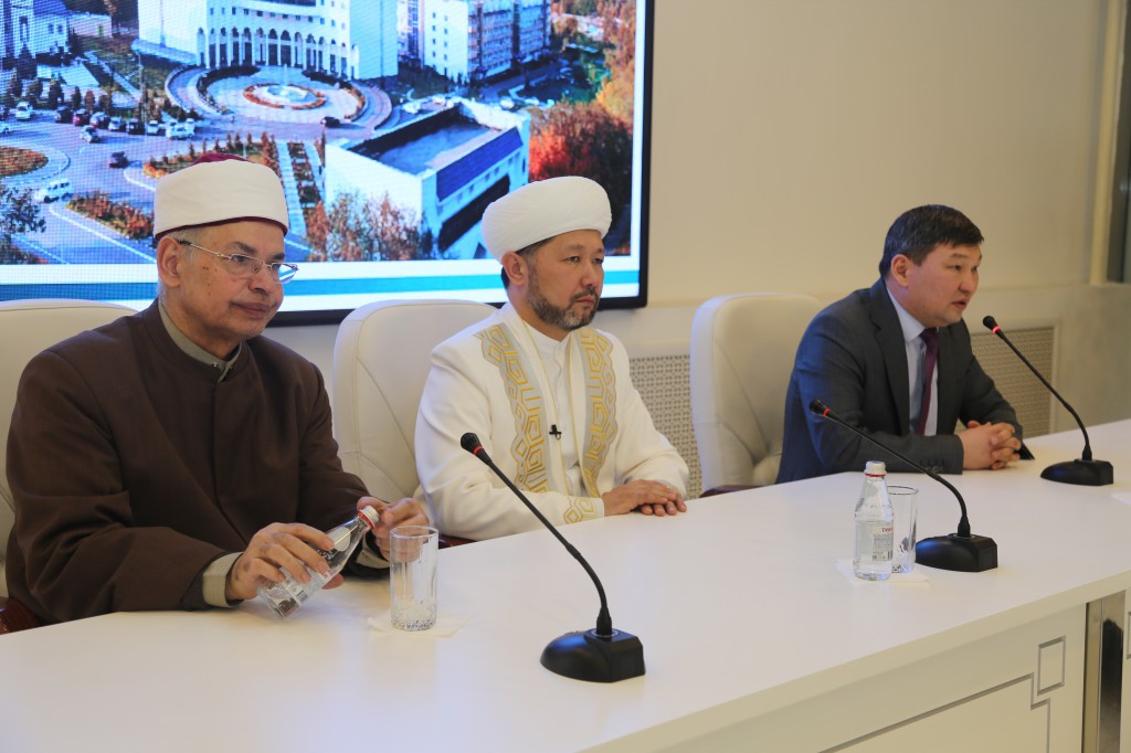Алматы қаласына ресми сапармен келген Бас мүфти Наурызбай қажы Тағанұлы бастаған делегация «Нұр Мүбәрак» университетінің ұстаздарымен кездесті.