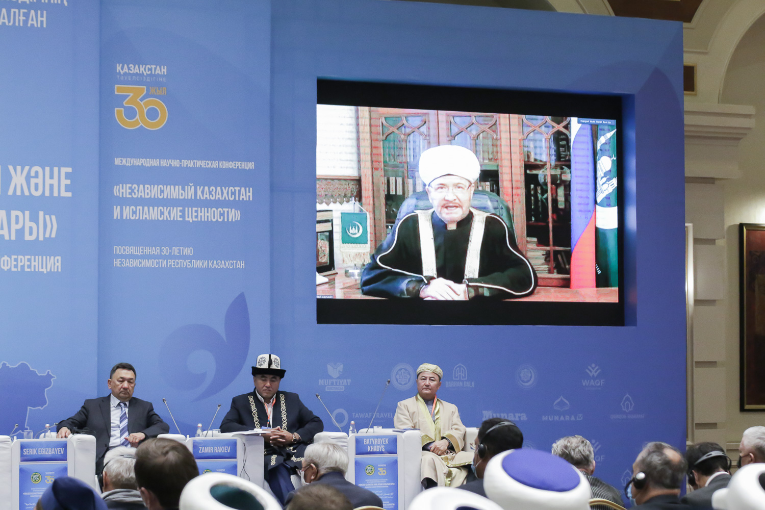 Елордада Қазақстан мұсылмандары діни басқармасының ұйымдастыруымен ел тәуелсіздігінің 30 жылдық мерейтойына орай өтіп жатқан «Тәуелсіз Қазақстан және Ислам құндылықтары» тақырыбындағы халықаралық ғылыми-тәжірибелік конференцияда Ресей мұсылмандары діни басқармасы және мүфтилер кеңесінің төрағасы Равиль Ғайнутдин онлайн қатысып, баяндама жасап:
