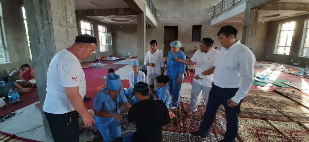 Әлі құрылысы бітпеген мешітке де жүз адам жайғасты. Оларға төсеніш пен ас-су жан-жақтағы мешіттерден жеткізіліп жатыр. Істің басы-қасында ауданның бас имамы Тұрлыбек Төлебек жүр. Абайсызда осындай күйге түскен арыстықтармен тілдесіп, көңілін аулап бағуда. Мешіттерде қазан асылып, ыстық тамақ әзірленіп жатыр. Мешіт қызметкерлері түгел аяқтарынан тік тұрып, көмек көрсетуде.