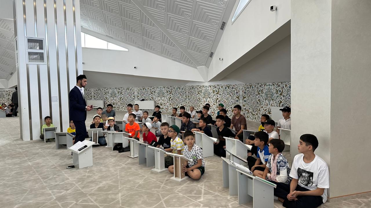 Өз қызметіне білек сыбана кірісіп кеткен мешіт ұстаздары бүгін бүлдіршіндерге алғашқы дәрістерін өткізді. Жазғы лагерьде оқытылатын «Имандылық әліппесі», «Құран әліппесі» және тәрбие дәрістері туралы қысқаша айтып өтті.