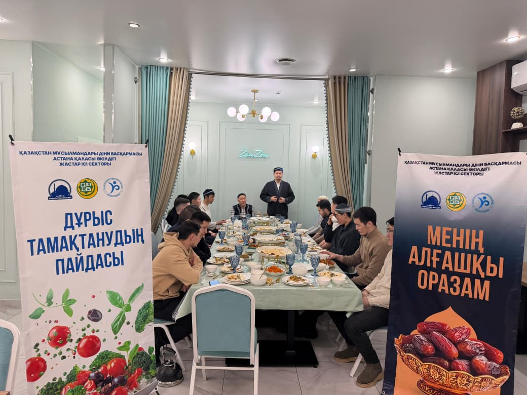 Астана қаласы өкілдігі «Ырыскелді қажы» мешітінің Жастар ісі секторына жауапты маманы Ағзамжан Исмайловтың ұйымдастыруымен студент шәкірттерге арнайы ауызашар дастарханы жайылды.