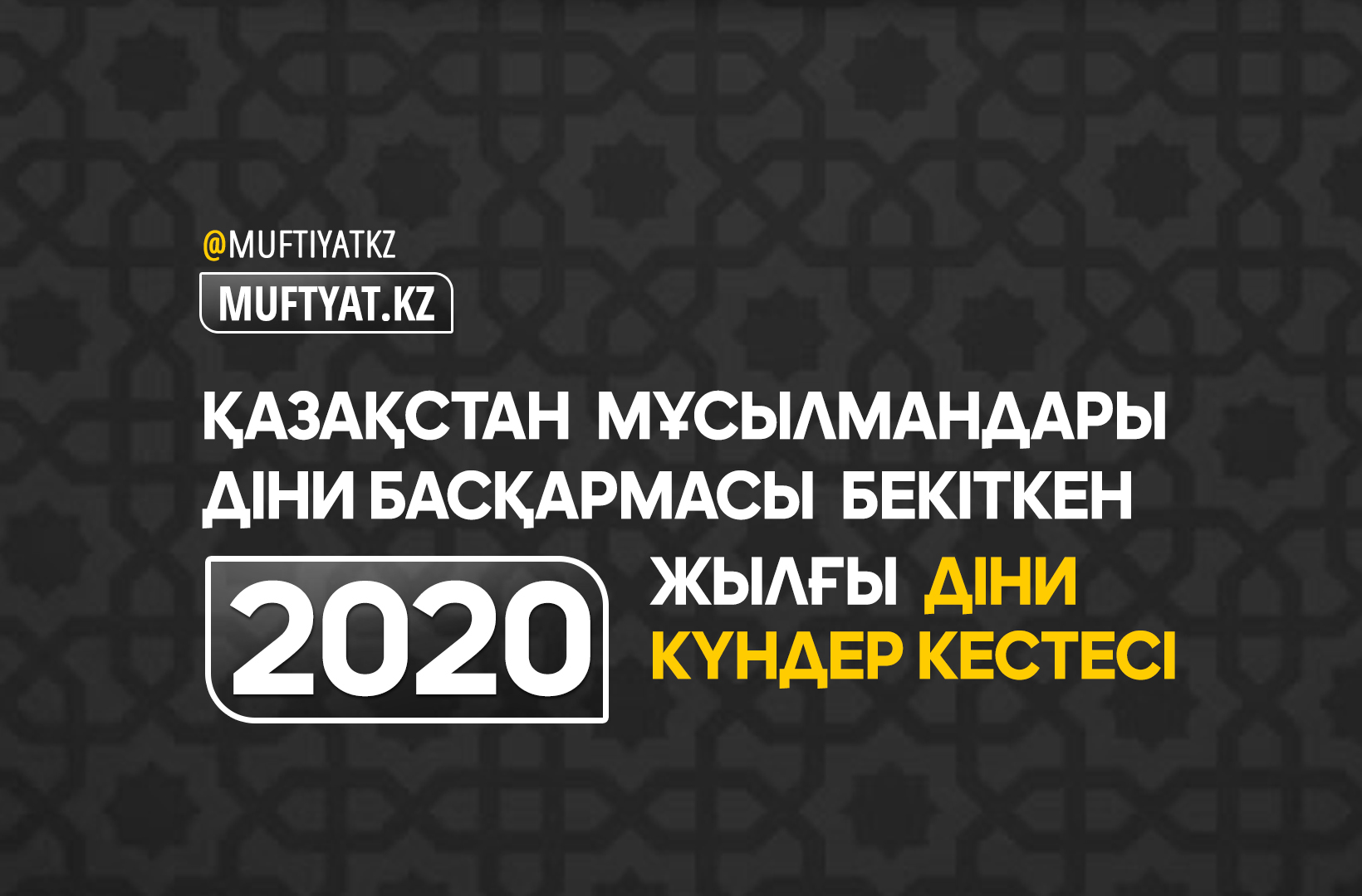 Қазақстан мұсылмандары діни басқарамасы бекіткен 2020 жылдың діни күндер кестесі.