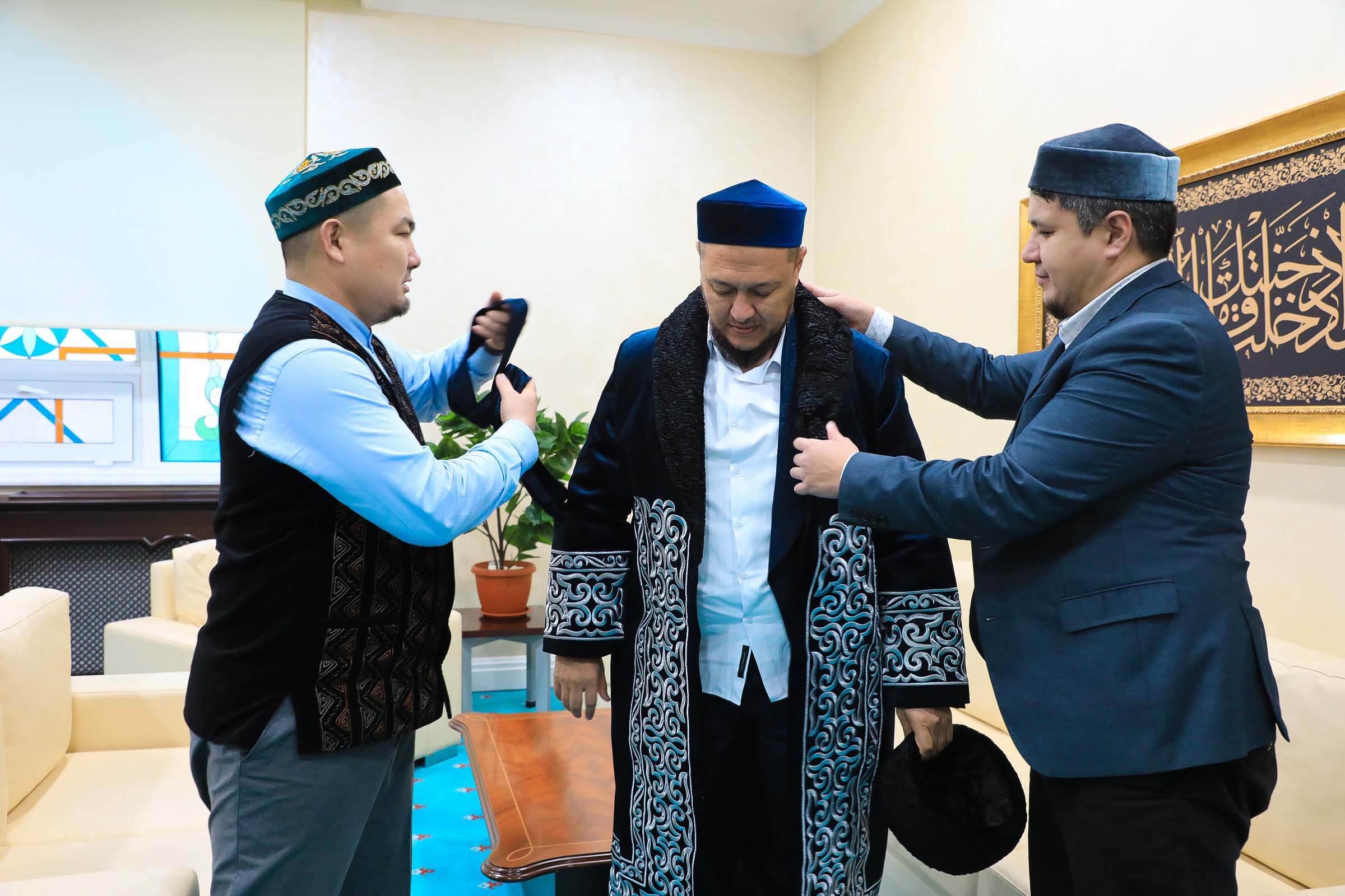Қабылдау соңында қазақы дәстүрімізге сай ұстаз Арман Қуанышбаевқа шапан жауып, қала бас имамы батасын берді.