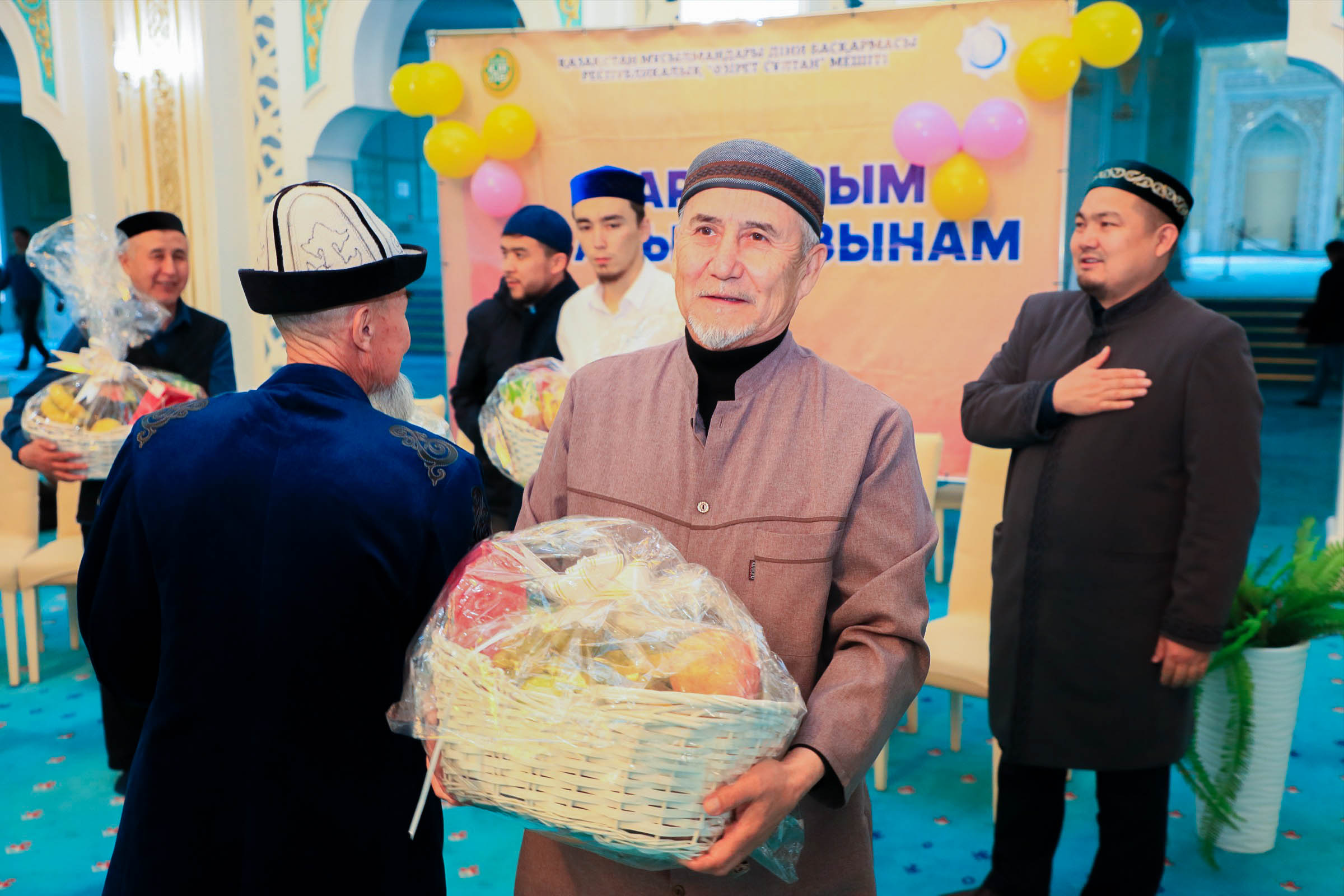«Қарты үйдің – қазынасы бар» екенін айта келіп, іссапарда болуына байланысты мерекелік шараның бүгін ұйымдастыруының басты себебі де ақсақалдардың ақ батасын алып, өз қолымен сый-сияпат табыстау екенін жеткізген бас имам қарияларға жеміс себеттерін таратты.