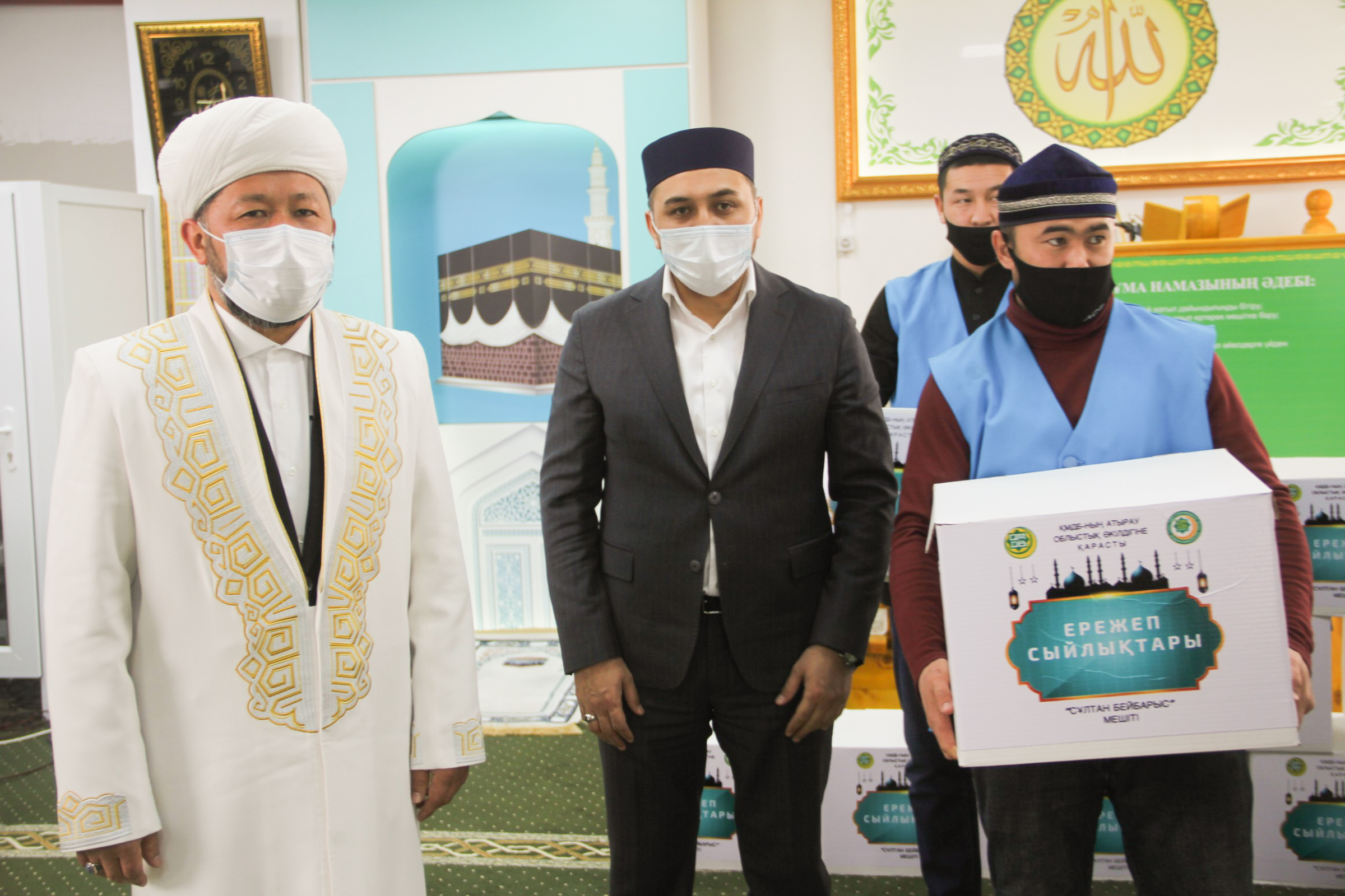 Қазақстан мұсылмандары діни басқармасының төрағасы Наурызбай қажы Тағанұлы Атырау облысына барған сапарында жамағатты қасиетті Ережеп айының келуімен құттықтап, сауабы мол айдың құрметіне 100 отбасыға арнайы сыйлық үлестірді.