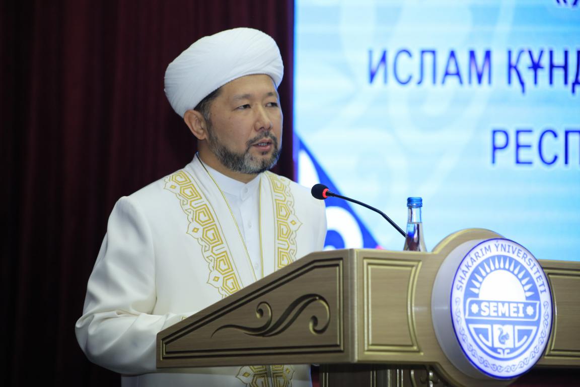 Сондай-ақ конференция барысында арнайы баяндама жасаған Бас мүфти: «Хакім Абай Алланы тану, оның сипаттарын білу үшін ғылымды меңгер деді. Білімді болу арқылы ғана біз кемелдікке жетеміз деген ойларын көптеген қара сөздерінен аңғаруға болады. Егер таным таяз болса, иман да – әлсіз. Өздеріңізге мәлім, Қазақстан мұсылмандары діни басқармасы 2019 жылдың қазан айында ІІІ республикалық имамдар форумын өткізді. Осы форумда Қазақстан мұсылмандарының «Жеті қазық» рухани тұғырнамасы қабылданды. Соның ішінде білімділікті жеті рухани қазыққа арнайы енгіздік», - деді