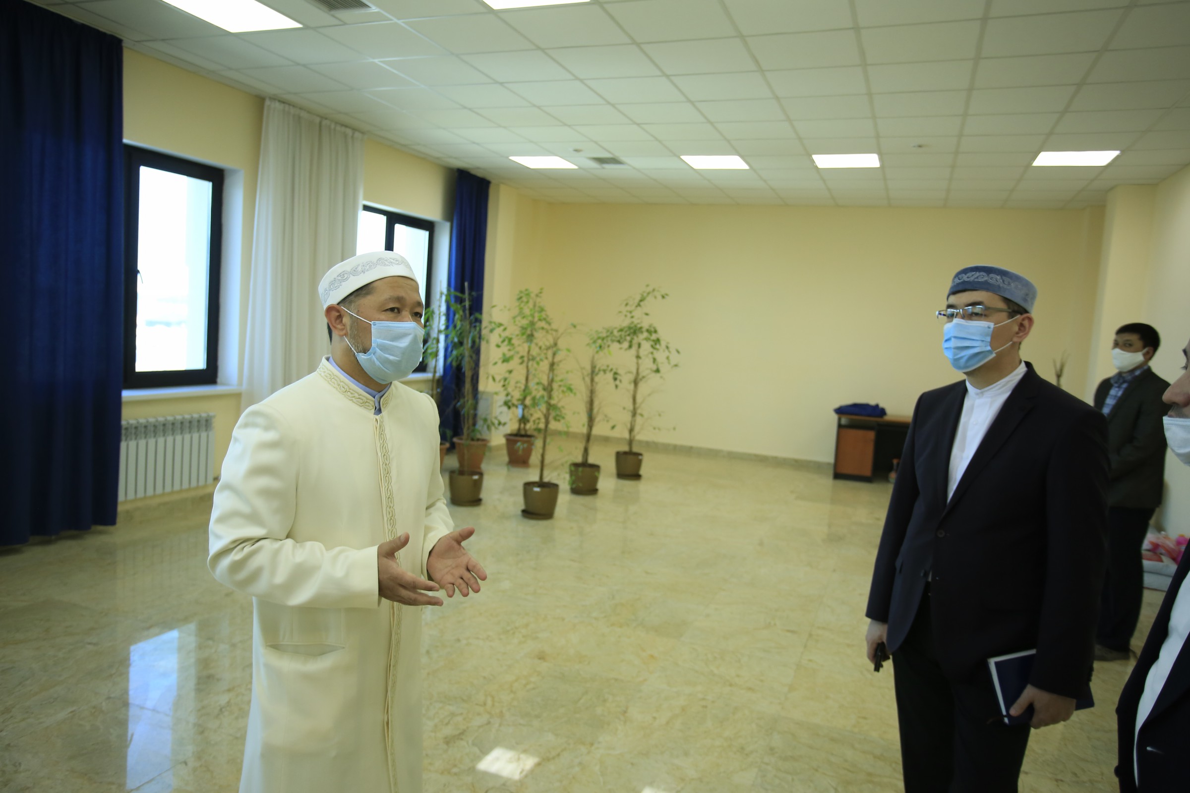 Бас мүфти ғимараттың спорт кешенін, кітапханасын, компьютер бөлмесін, компьютер залын, акт залы мен спорт залын, ғимарат маңын аралап шықты.