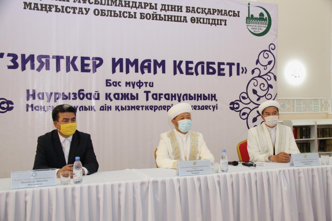Бүгін Маңғыстау облысына сапармен барған Қазақстан мұсылмандары діни басқармасының төрағасы Наурызбай қажы Тағанұлы Ақтау қаласында имамдарға дәріс оқып, діни салада жинақтаған тәжірибесімен бөлісті.