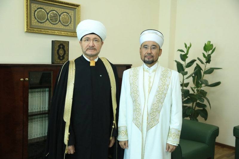 Бас мүфти қазақы дәстүрмен ресейлік әріптесінің иығына шапан жапты. Кәде-сыйды табыстады.