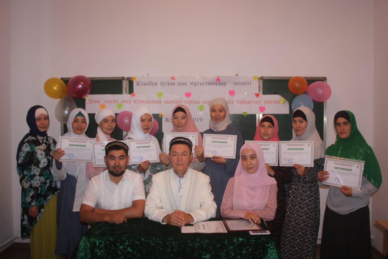 Жәнібек аудандық мұсылмандар мешіті жанындағы діни сауат ашу орталығында қыз-келіншектердің діни сауатын арттыру мақсатында арнайы курс ұйымдастырылды.