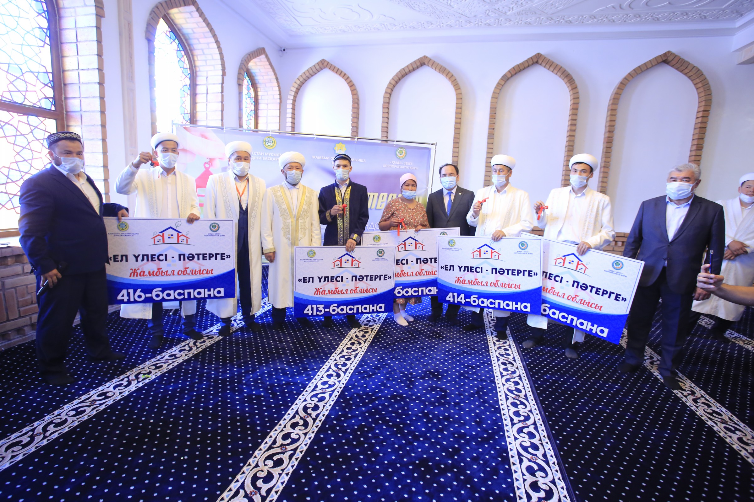 Тәуелсіздіктің 30 жылдығына орай Тараз шаһарында өткен «Әулие ата» мешітінің қайта ашылу салтанатынан кейін «Ел үлесі – пәтерге» қайырымдылық акциясымен Жамбыл облысының 5 отбасына тұрғын үй кілті табысталды.