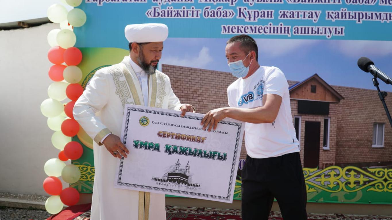 Бас мүфти Наурызбай қажы Тағанұлы Шығыс Қазақстан облысына жасаған ресми сапары барысында Тарбағатай ауданы Ақжар елдімекенінде бой көтерген қайырымдылық мекемесінің ашылу рәсімінде аталған оқу орны ғимаратының құрылысын жүргізген Ерболат Долдабаевқа айрықша алғыс айтып, ұмра қажылығына жолдама берді.