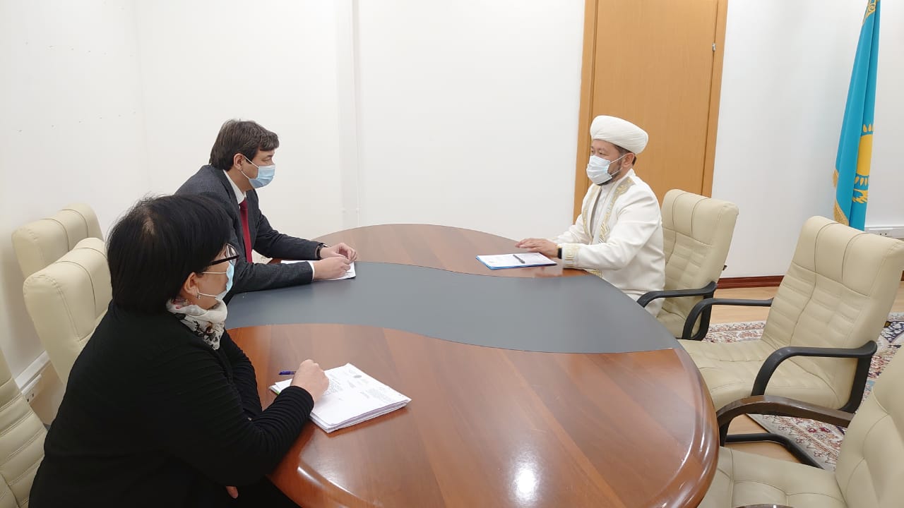 ҚМДБ Төрағасы, Бас мүфтиі Наурызбай қажы Тағанұлы елордада Денсаулық сақтау вице-министрі – Бас мемлекеттік санитарлық дәрігер Ерлан Қиясовпен кездесті.