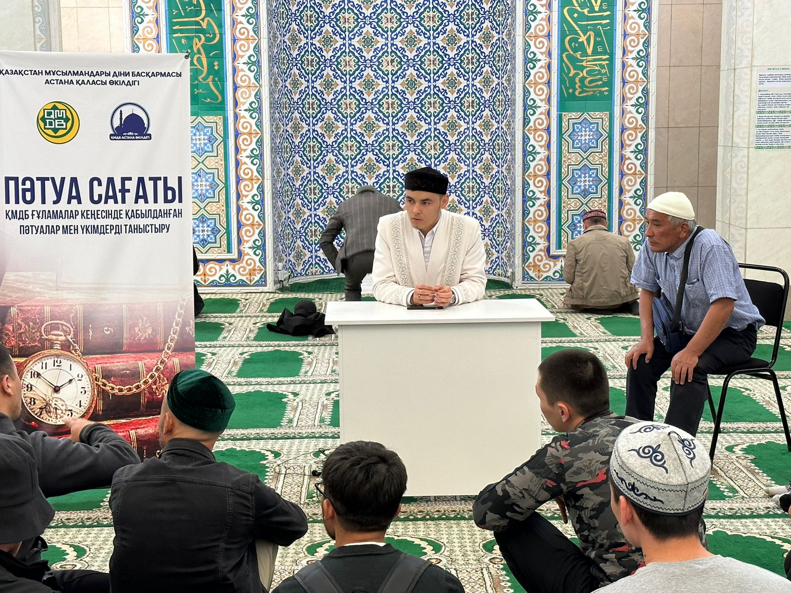 ҚМДБ Астана өкілдігіне қарасты мешіттерде әр жұма сайын «Пәтуа сағаты» өткізіліп келеді. Жұма намазынан кейінгі кезекті уағызда ҚМДБ ғұламалар кеңесінде қабылданған пәтуалар негізінде қаржы мәселелеріне қатысты үкімдер жамағатқа таныстырылды.