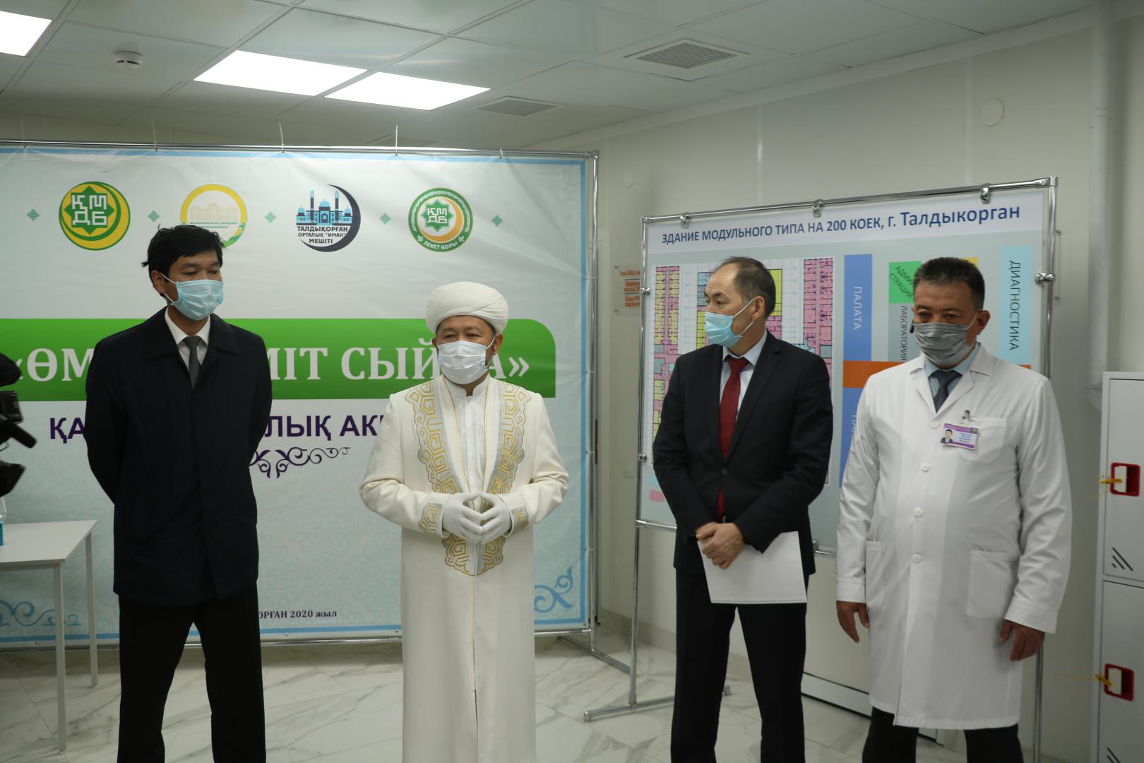 Қазақстан мұсылмандары діни басқармасының төрағасы, Бас мүфти Наурызбай қажы Тағанұлы Талдықорған қаласына сапары барысында жаңадан ашылған облыстық инфекциялық аурухананың медицина қызметкерлерімен кездесті.