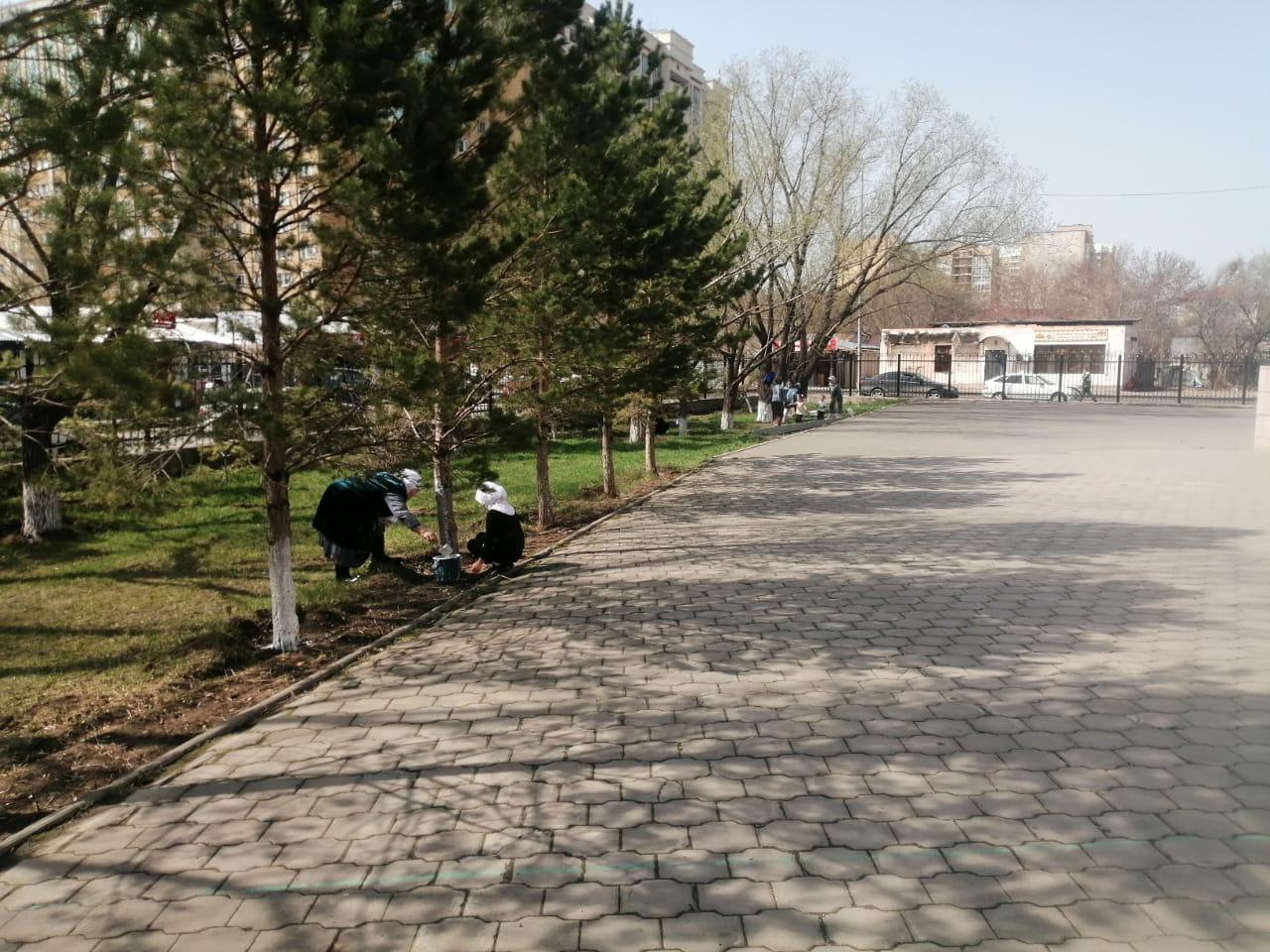 Құлшылық үйінің ауласындағы талдар аққа боялып, шашылып жатқан жапырақтардан тазаланды. Аула топырақтары қопсытылып, төңіректің бәрі бас-аяғы артық заттар мен қоқыстардан тазартылды.