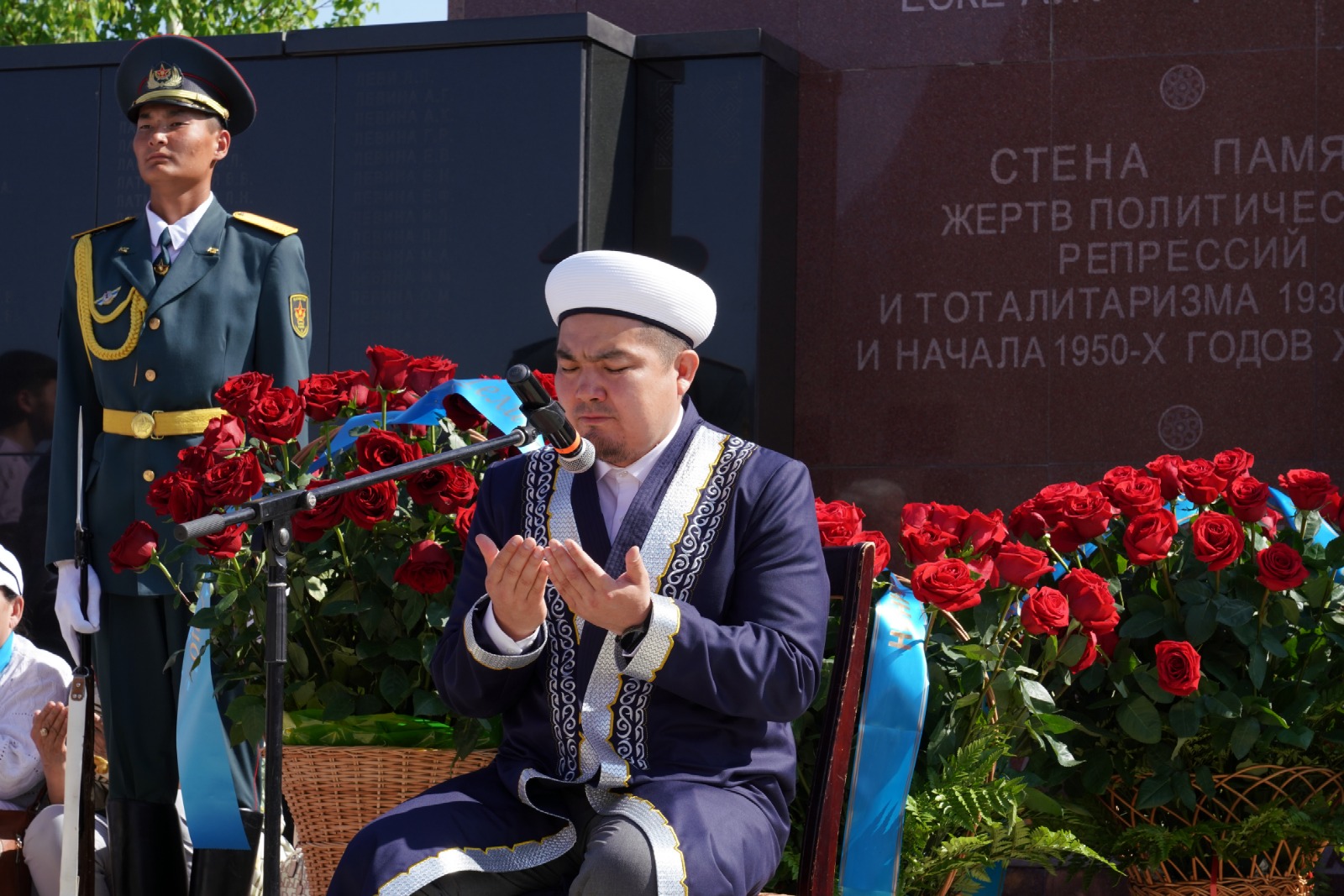 Қала бас имамы Ерболат Нұрылдаұлы қасиетті Құран аяттарын оқып, саяси қуғын-сүргін құрбандарының рухына бағыштады.