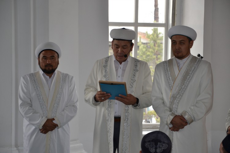Қазақстан мұсылмандары діни басқармасының Қайырымдылық және уақып істері бөлімінің меңерушісі Камалжан Бекбосынұлы Тұрдыбаев жұма намазы алдында «Қос мұнаралы» орталық мешітінің ұжымы мен жамағатқа Қазақстан мұсылмандары діни басқармасының Төрағасы, Бас мүфти Серікбай қажы Сатыбалдыұлының ыстық сәлемін жеткізіп жаңа басшыны таныстырып, бас мүфтидің бұйрығын оқып берді.