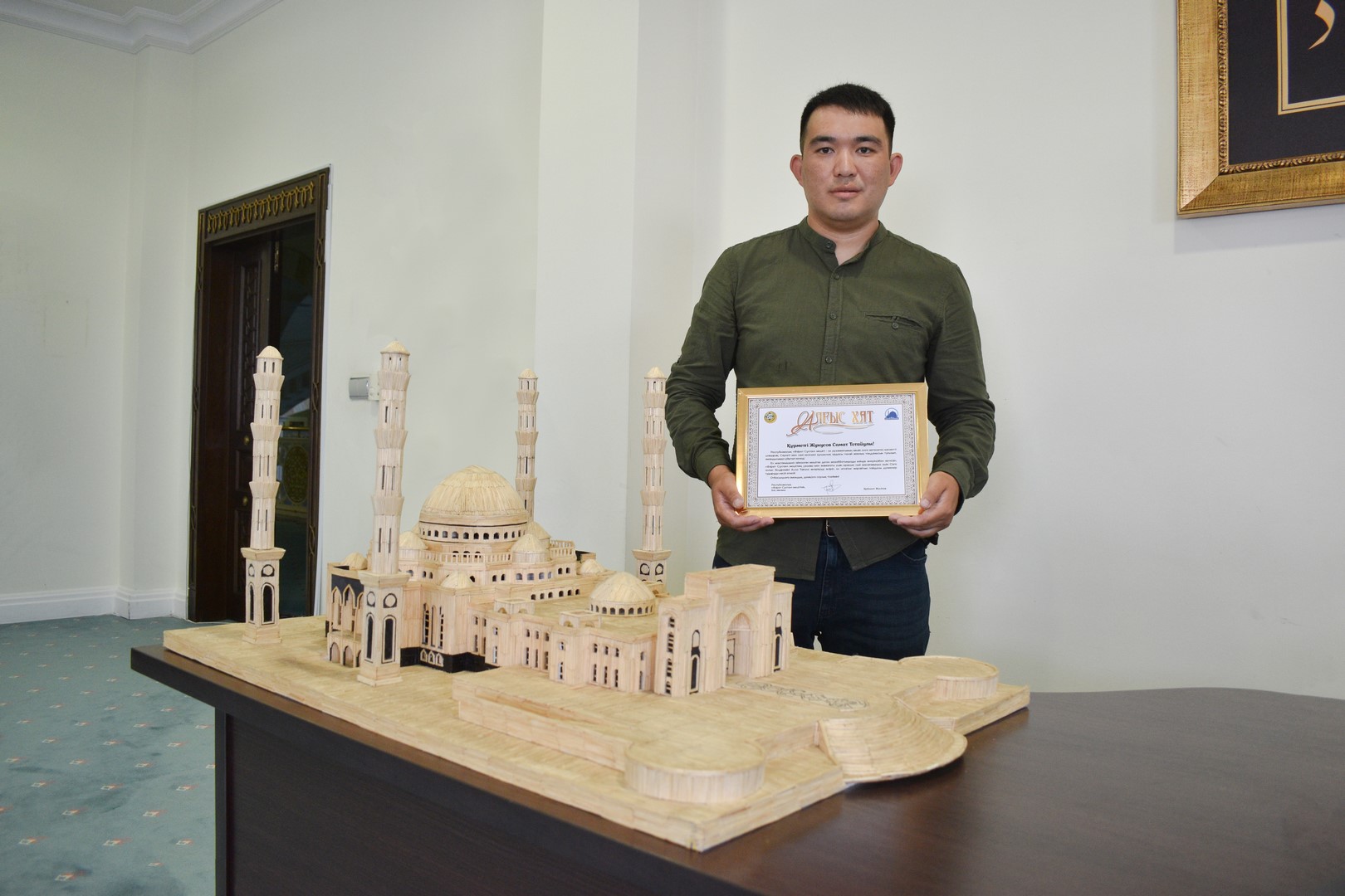 Сіріңкеден мешіт макетін жасаған азамат туындысын сыйға тартты (ФОТО)