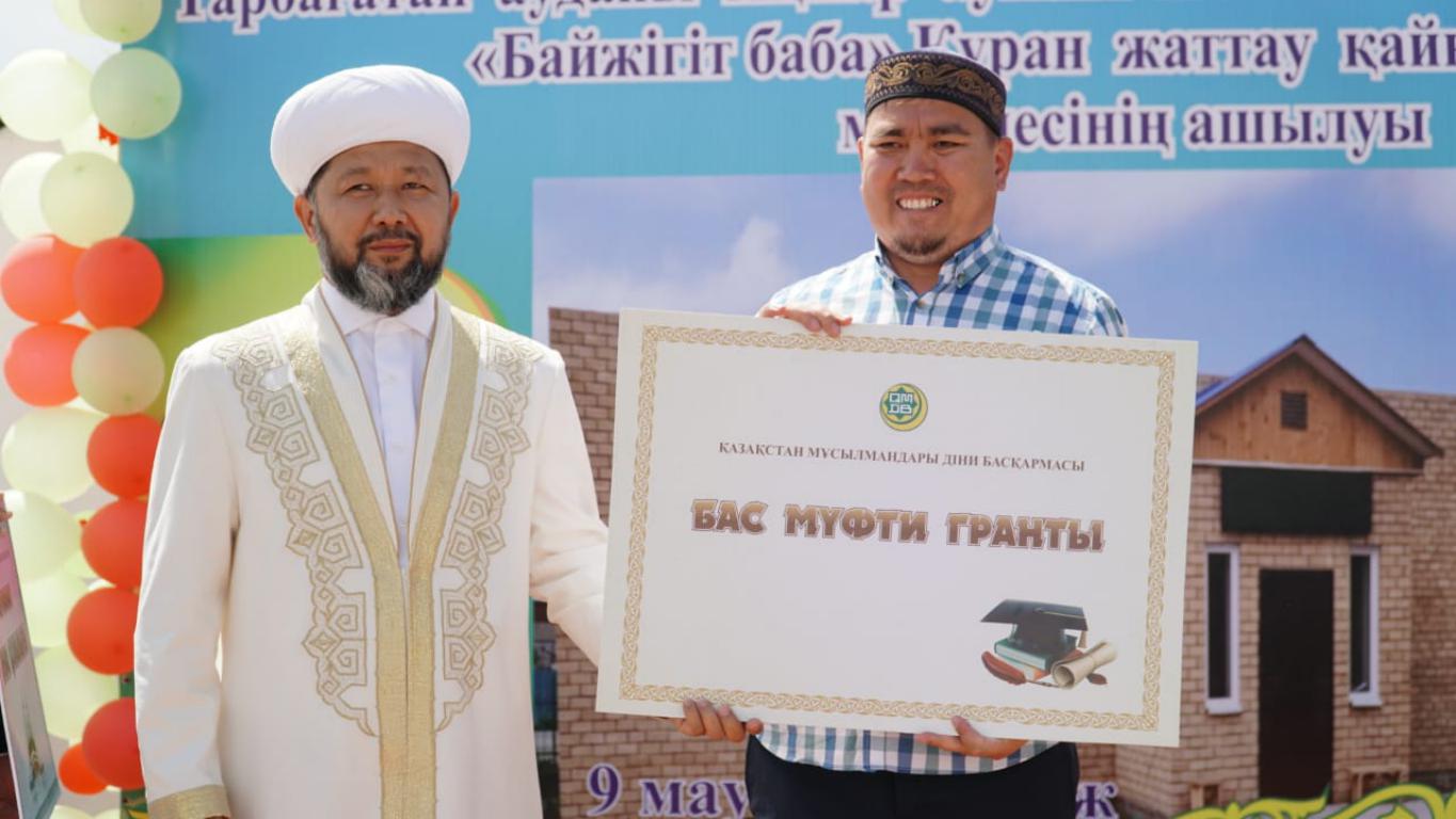 «Біз өткен жылы Қазақстан мұсылмандары діни басқармасының 30 жылдық мерейтойына орай отыздан астам студентке білім грантын табыстадық. Осы бастаманың жалғасы ретінде Ақжар ауылының тұрғыны, шәкіртіміз Ринат Назарбековке білім грантын беріп отырмыз. Оқуда озат болған шәкірттерді, сонымен қатар отбасылық жағдайға байланысты оқу ақысын төлей алмаған шәкірттерді қолдау – басты жұмыстарымыздың бірі болып қала береді. Алла Тағала алған біліміңді еліміз бен жеріміздің игілігі жолында жұмсауыңа тілектеспін» деді Бас мүфти Наурызбай қажы Тағанұлы.
