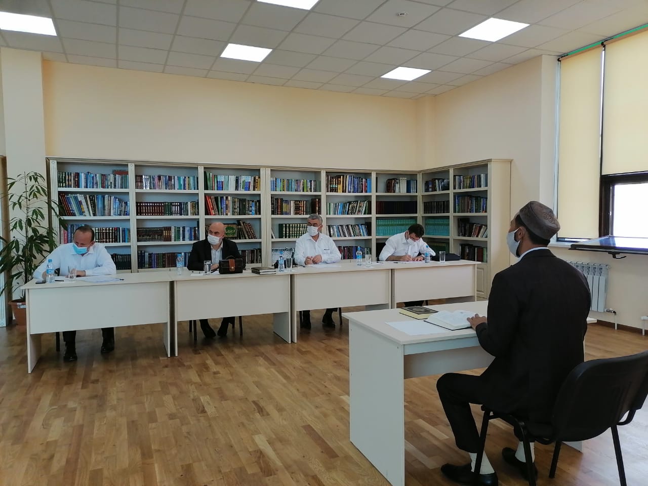 Емтиханды Түркияның Оқу-ағарту департаментінің басшысы Жошкун Дурсун Али, Түркияның Еуразия елдері департаментінің басшысы Гөр Салих, Қайсери Діни жоғары білікті мамандарды жетілдіру «Хасеки» иститутының оқытушысы Кескин Айдын және Түркияның Қазақстандағы өкілетті елшілігінің Дін істері жөніндегі кеңесшісі Акын Галип қабылдауда.