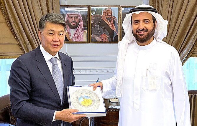 Посол Казахстана в Саудовской Аравии Берик Арын встретился с Министром по делам хаджа и умры КСА Тауфиком бен Фаузаном Ар-Рабией.