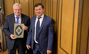 Депутат Госдумы Гаджимурад Омаров подарил лидеру «Справедливой России» Сергею Миронову экземпляр тафсира Кyр`ана в переводе Абдуллы Юсуфа Али.