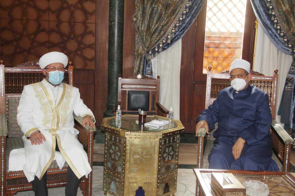Председатель Духовного управления мусульман Казахстана Наурызбай кажы Таганулы в рамках официального визита в Арабскую Республику Египет встретился с шейхом Университета Аль-Азхар, Главным имамом Ахмедом Тайипом.