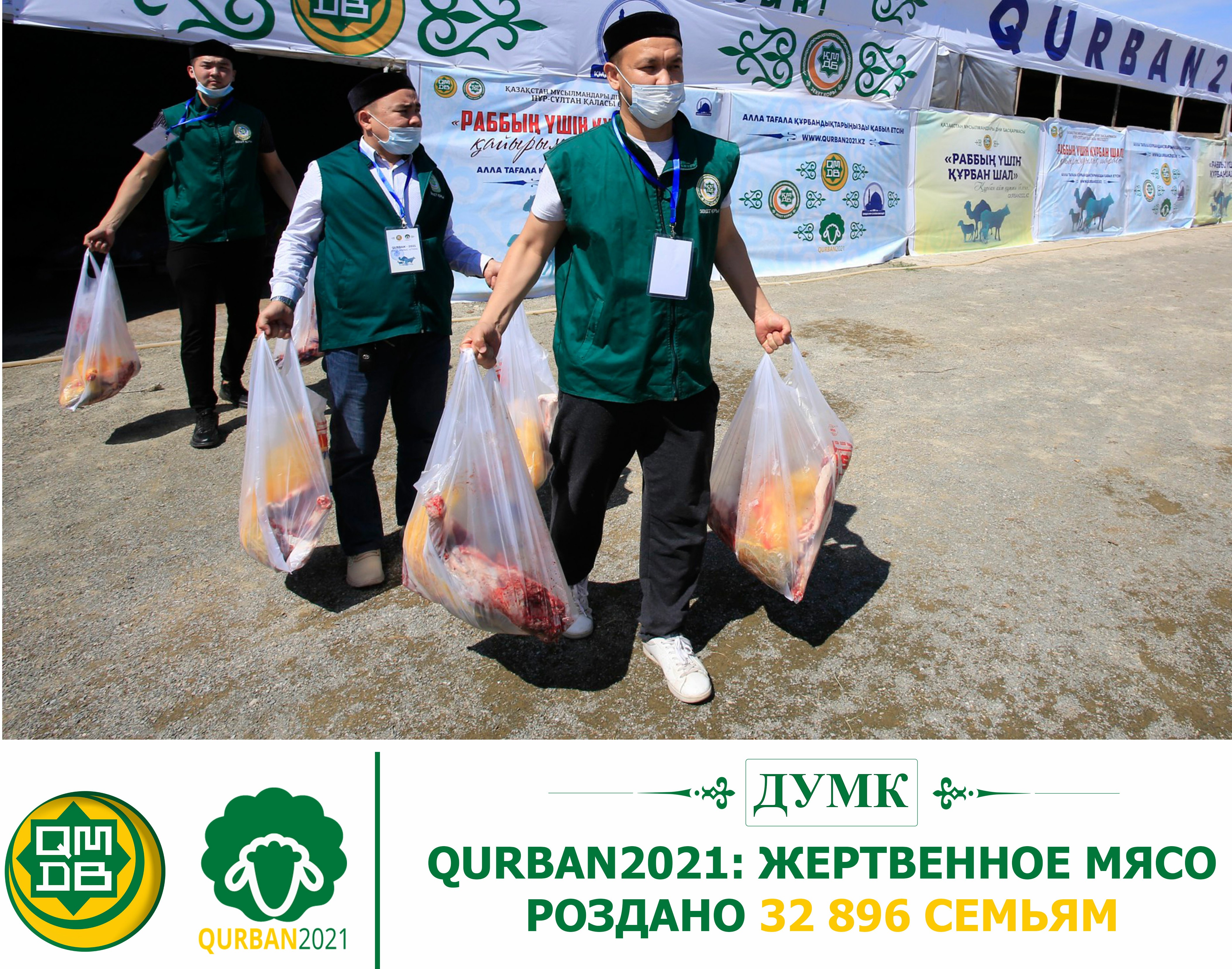Напомним, что в первый день праздника Курбан (20 июля 2021 года) региональные представительства ДУМК доставили жертвенное мясо 40 156 малообеспеченным семьям. Всего за два дня Курбан Айта мясом были обеспечены 73 052 семьи.
