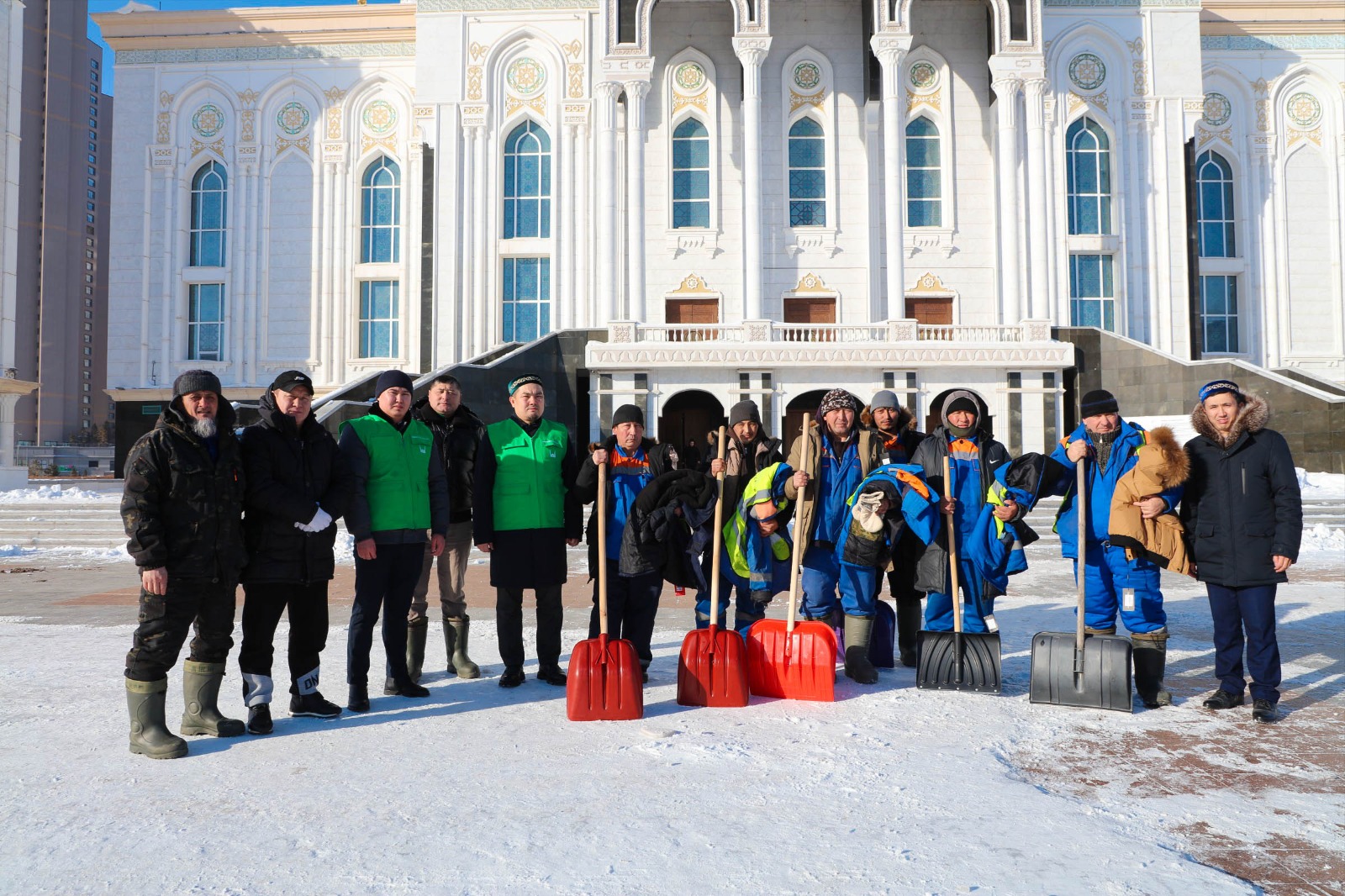 По этому случаю Главный имам представительства ДУМК города Астаны Ерболат Нурылдаулы выразил благодарность группе снегоуборщиков и подарил им новую зимнюю верхнюю одежду.