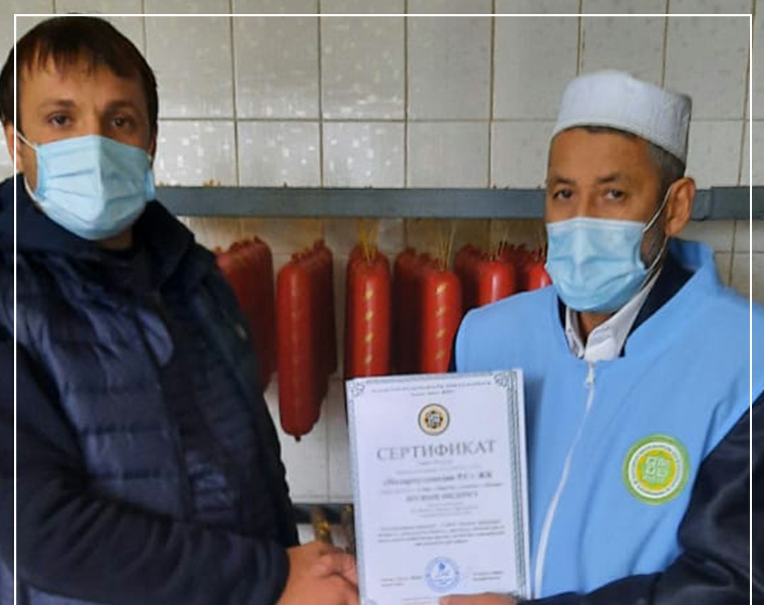 После тщательной работы и лабораторных испытаний технологом и инспектором-контролером ответственный представитель ООО «Халял Даму» по Жамбылской области Миразизов Нурмаджан вручил колбасному цеху «Назармухамедов» сертификат «Халяль». ⠀