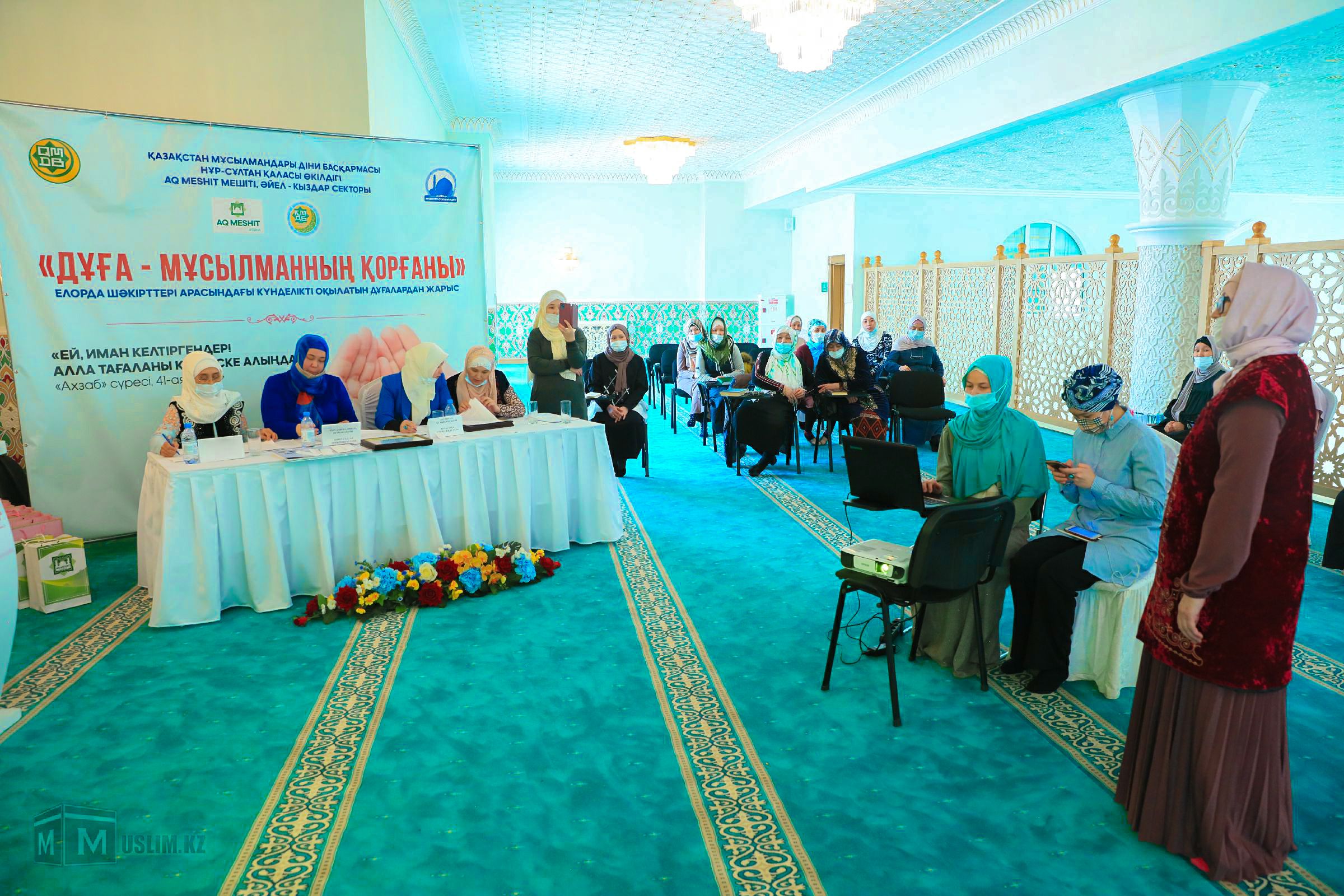 Во время конкурса, который был организован среди женщин, обучающихся на курсах религиозной грамотности, кандидатки продемонстрировали свое знание ежедневных молитв и объяснили их значение на казахском языке.